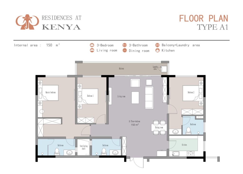 3 Bedroom Apartment 150 – 155 sqm 17.1M – 18.3M