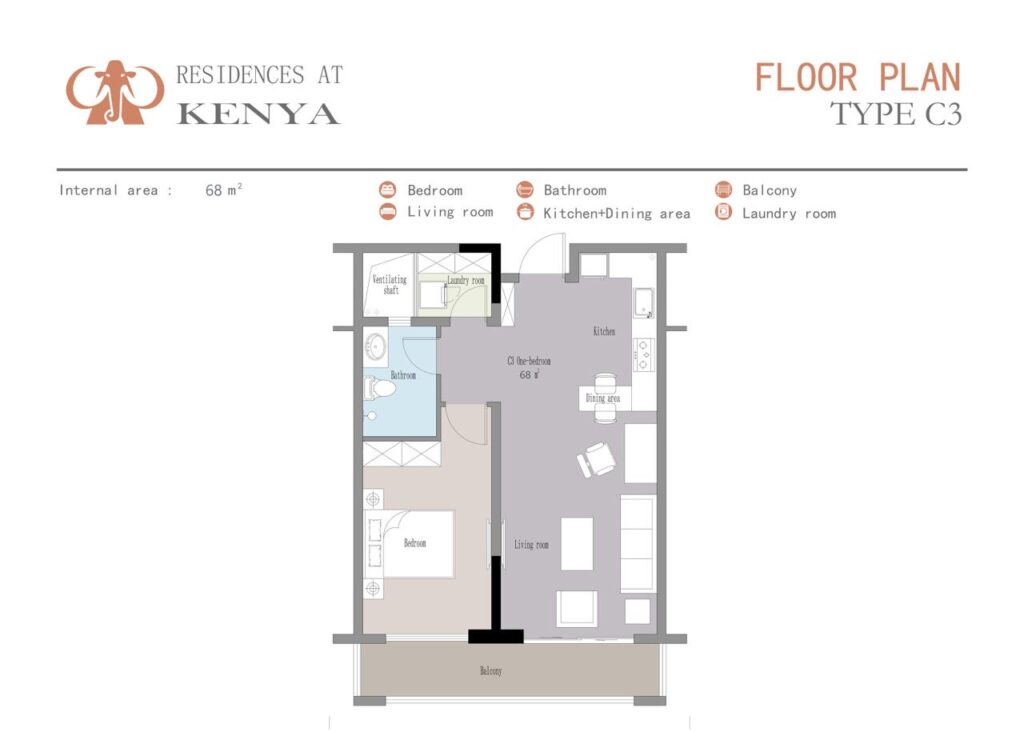 1 Bedroom Apartment 55 – 68 sqm 5.5M – 8.0M